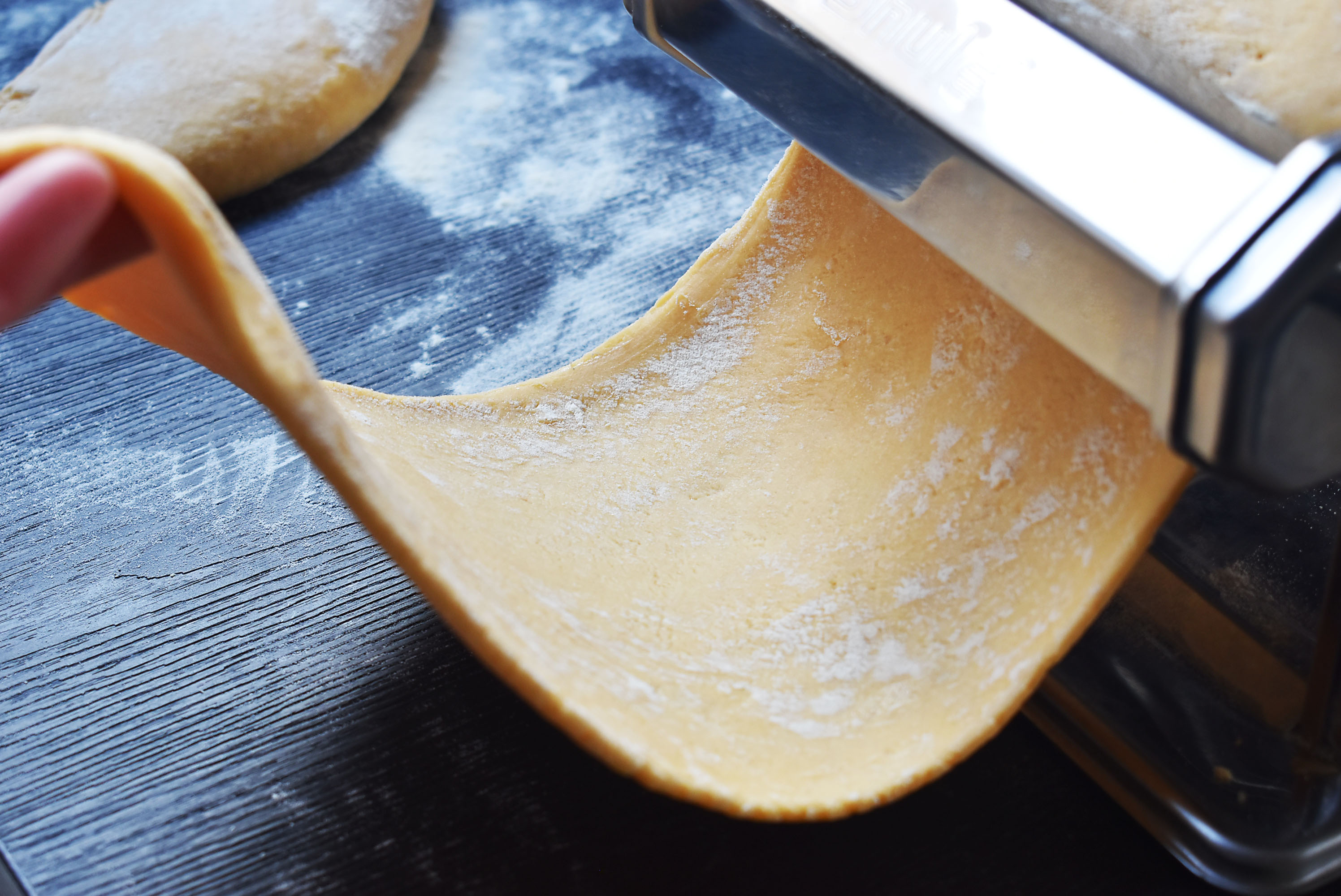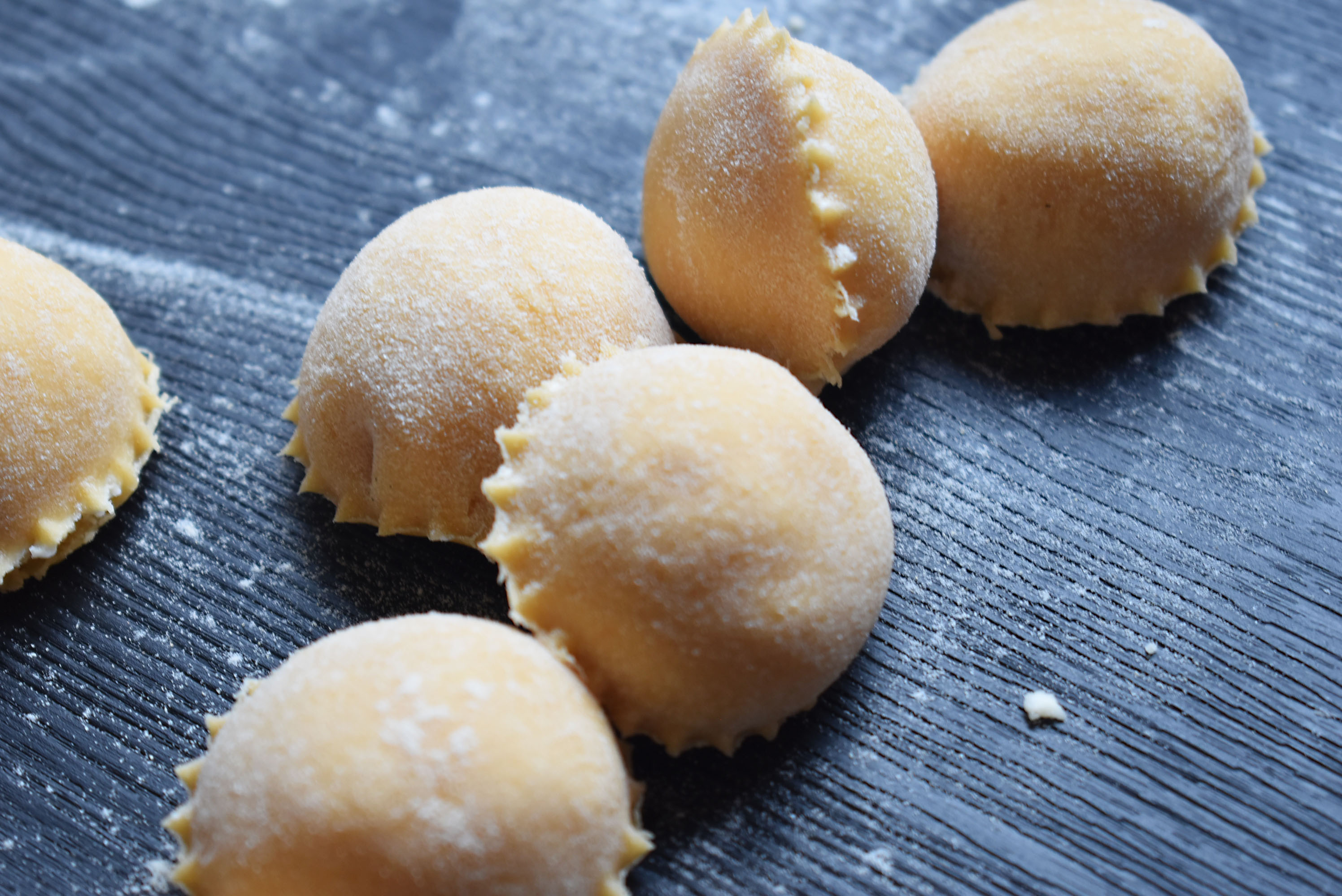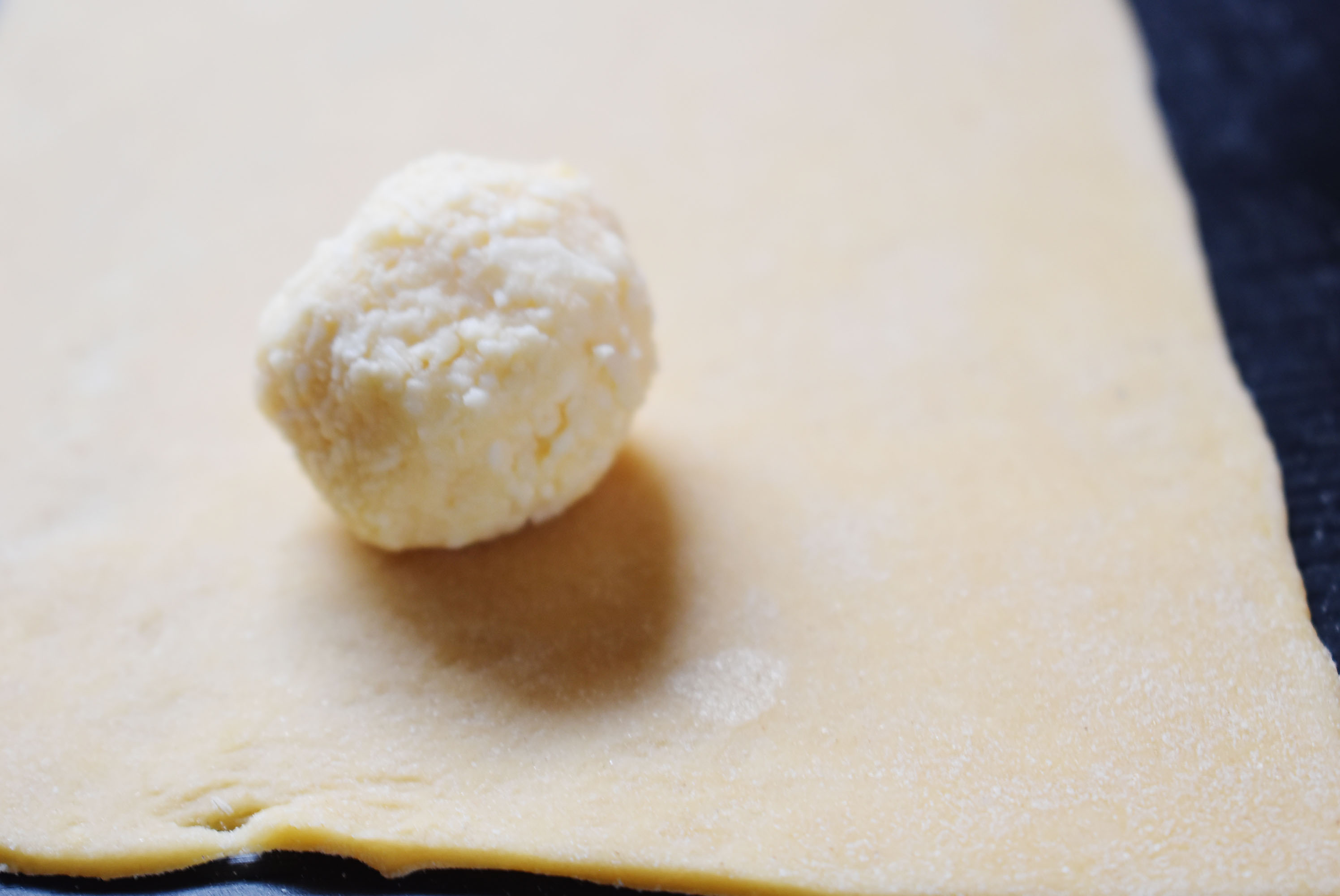 Ανοίγοντας το φύλλο για τα ραβιόλι, γεμίζοντας απλά με τριμμένο ώριμο χαλούμι σε πάστα με αυγό, πιπέρι ,εξαιρετικό ελαιόλαδο όπως το λάμδα.