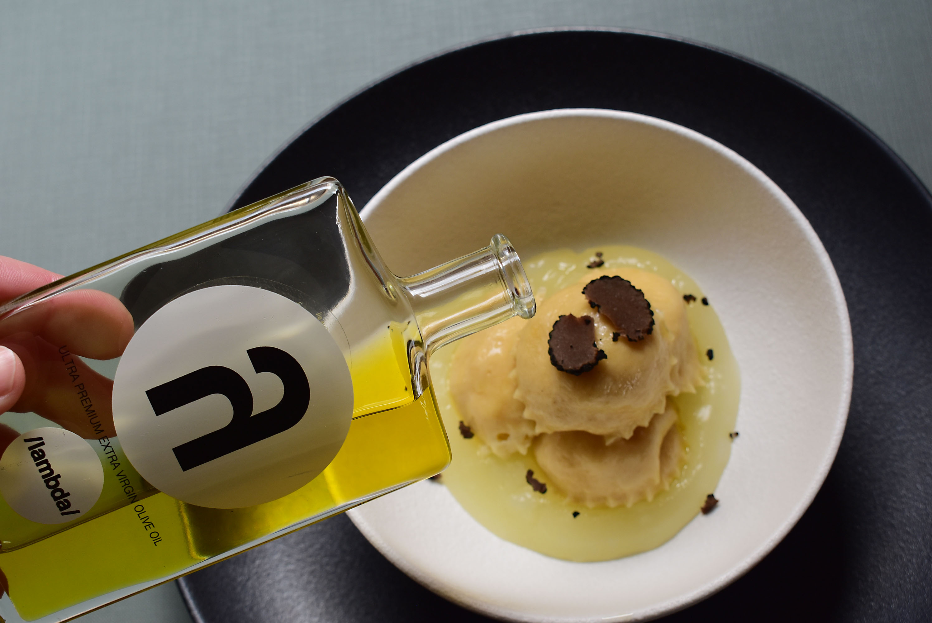 Ravioli with mature Halloumi and λ /lambda/ Olive Oil