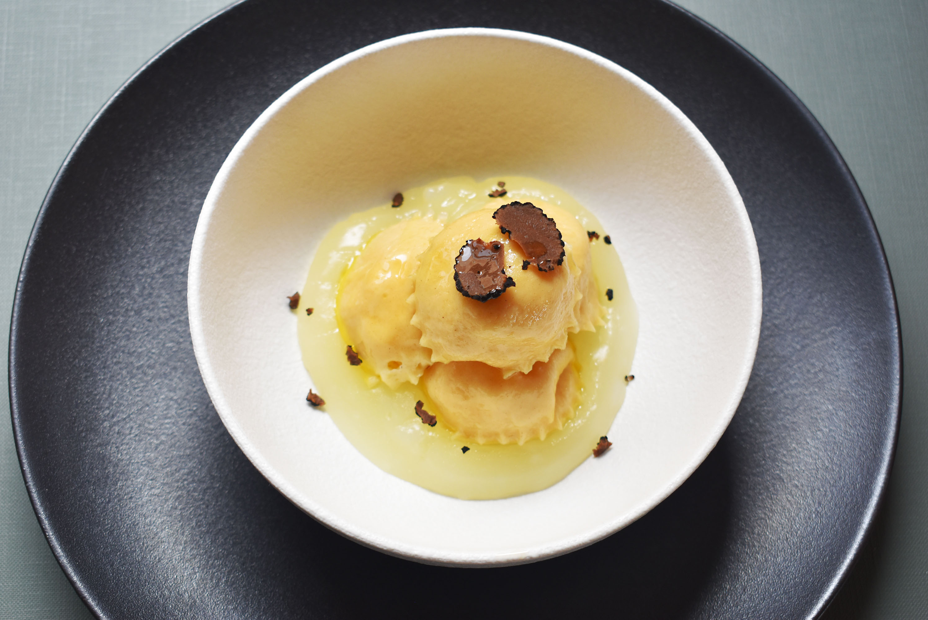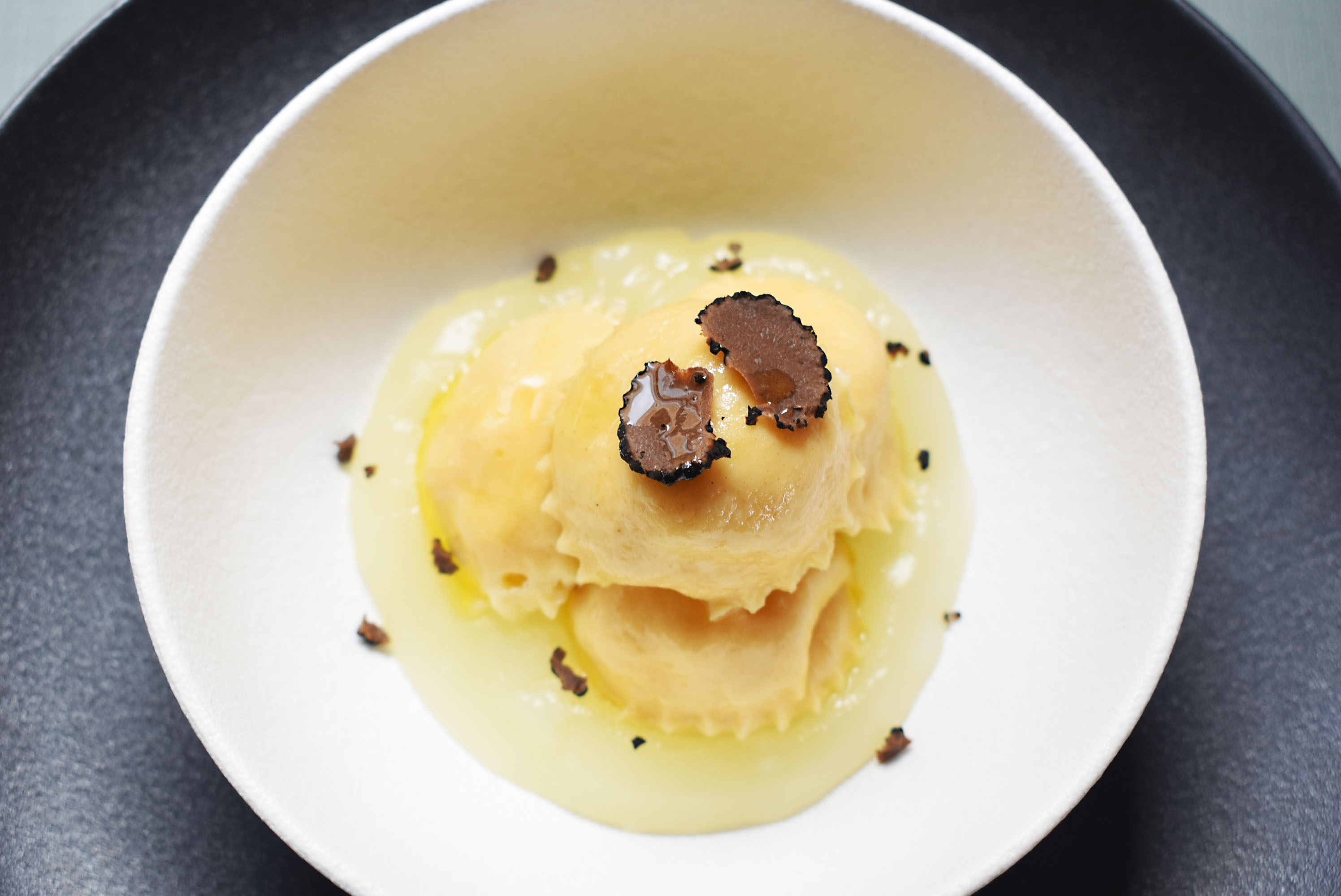 By closing with thinly sliced truffles, we give the presentation a touch of our own measure.